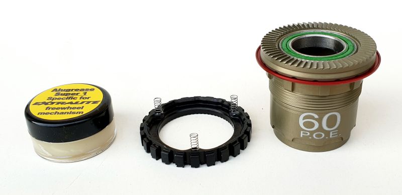 Each kit includes: freehub-body, float-ring, bearings, springs and the specific Alugrease S1.